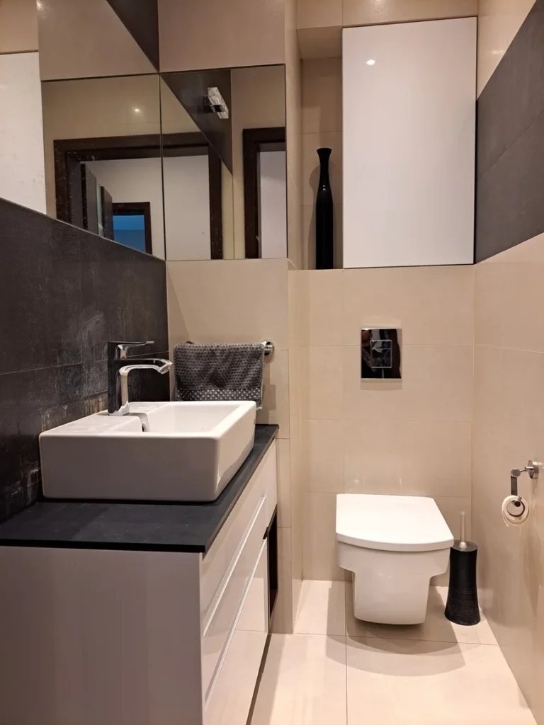- Odejmij 10–15 cm: Otrzymasz optymalną wysokość umywalki.