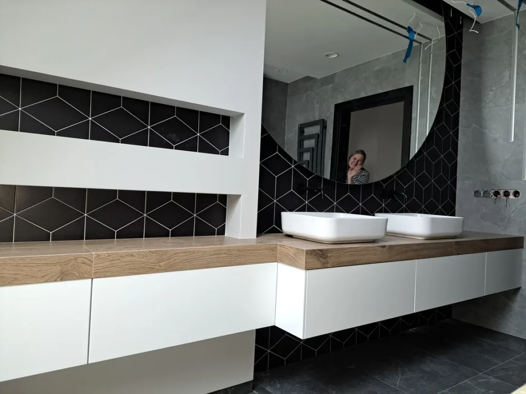 Meble łazienkowe na wymiar, dopasowane do Twojej przestrzeni i stylu. Każdy centymetr zaprojektowany z myślą o funkcjonalności i estetyce.
