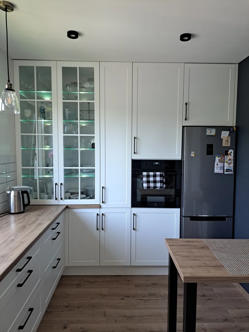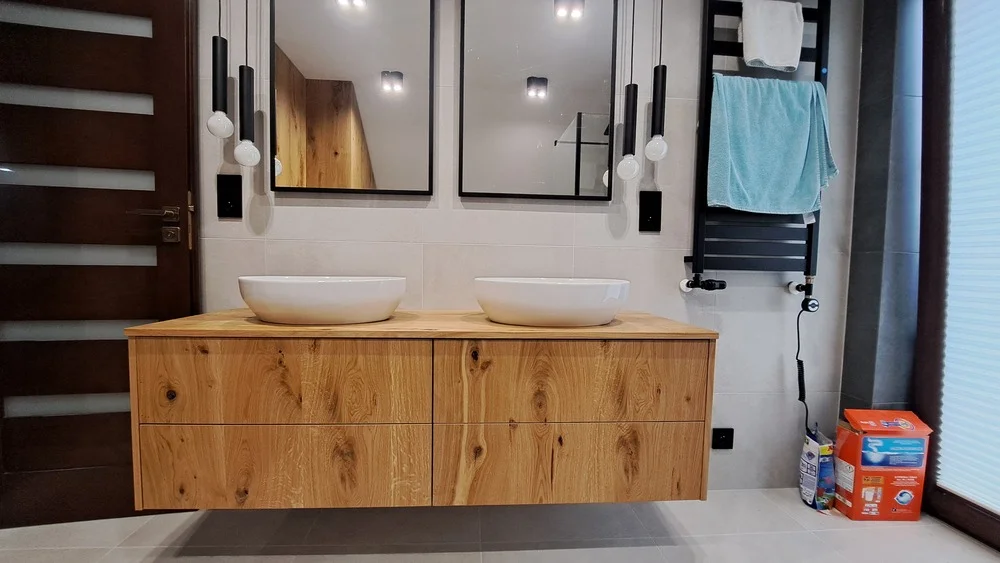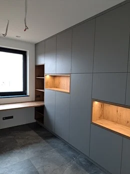 Oferujemy szeroki wybór materiałów, takich jak lite drewno, płyty laminowane, MDF, fornir czy szkło. Dysponujemy również różnorodnymi wykończeniami, kolorami i uchwytami, które dostosowujemy do Twoich potrzeb.