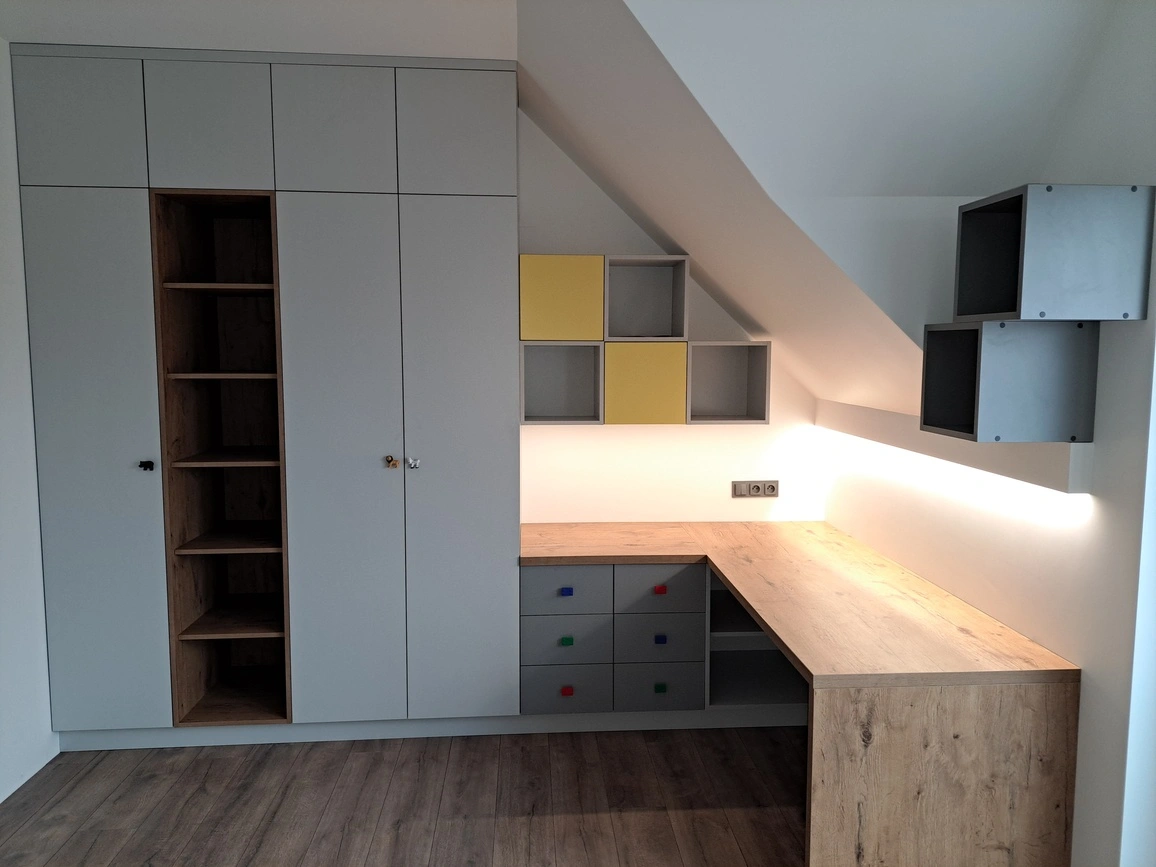 Tak, specjalizujemy się w tworzeniu mebli na wymiar, które dopasowujemy do każdego rodzaju przestrzeni – nawet o niestandardowych wymiarach lub nietypowym układzie. Niezależnie od wyzwania, znajdziemy dla Ciebie najlepsze rozwiązanie.